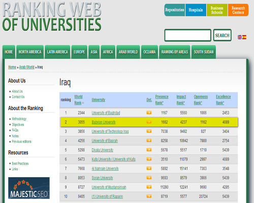 تاكات المحتوى: الموقع الالكتروني لجامعة بابل يتقدم للمركز الثاني عراقيا وضمن المائة موقع عربيا