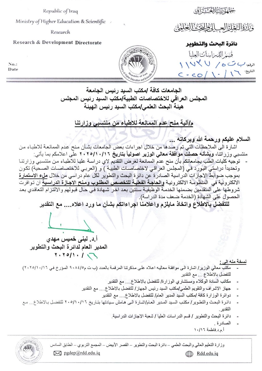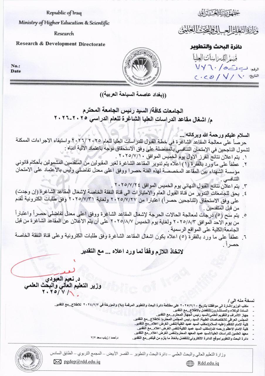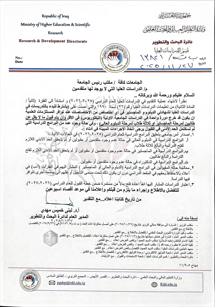 اعمام الية دراسة الدكتوراه بدون كورسات10442 في 18-9-2025 : لتحميل الملف اضغط هنا