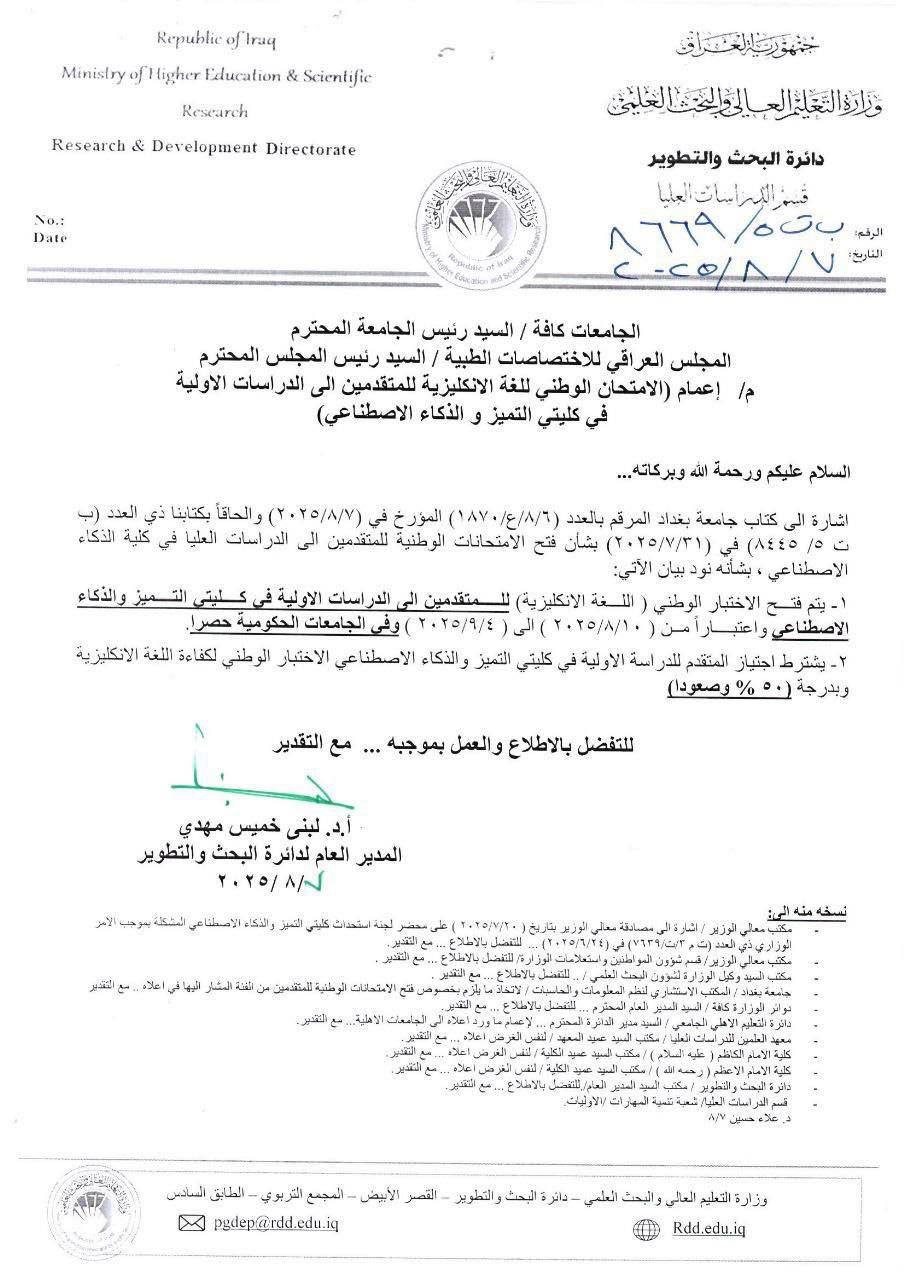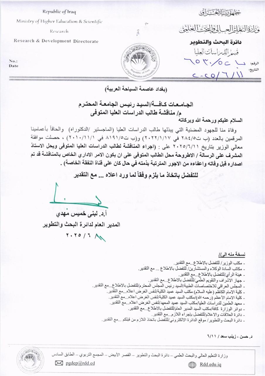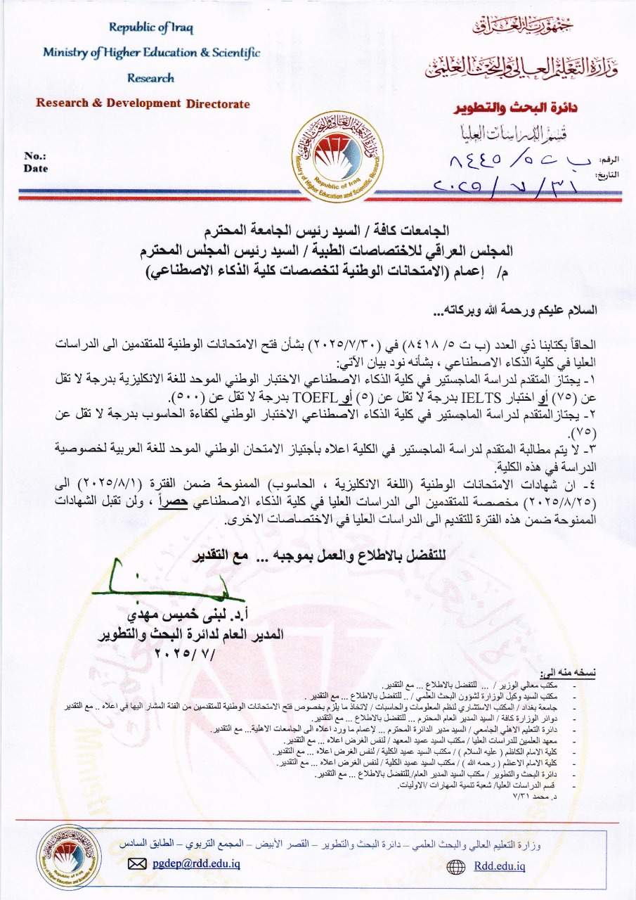 اعمام الية دراسة الدكتوراه بدون كورسات10442 في 18-9-2025 : لتحميل الملف اضغط هنا