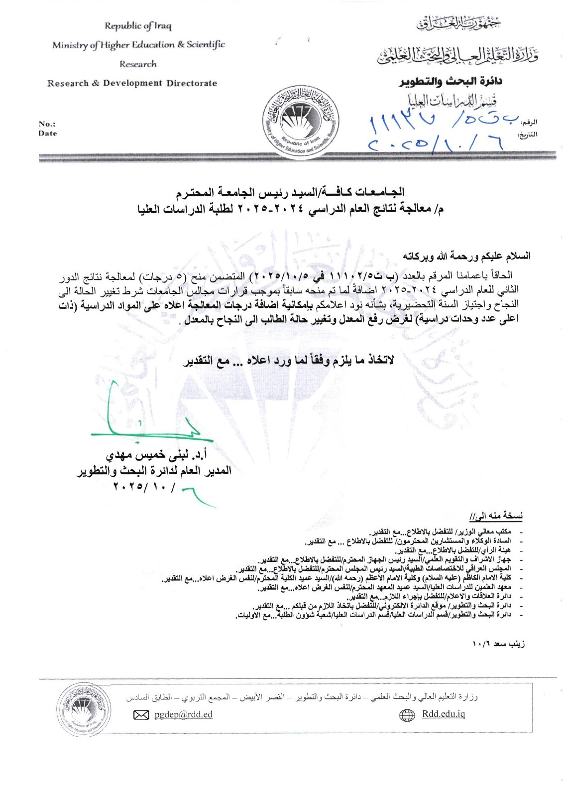 معالجة نتائج الدور الثاني للعام 2024-2025 المرقم 11102 في 2025 : لتحميل الملف اضغط هنا